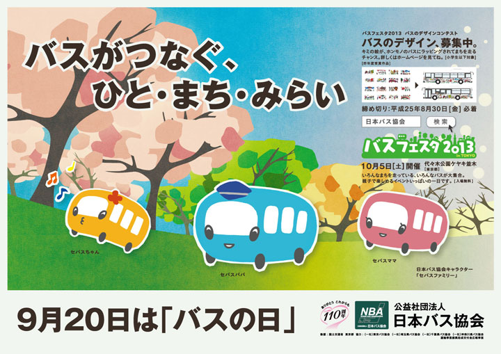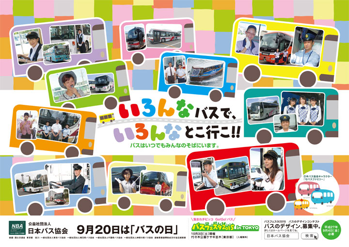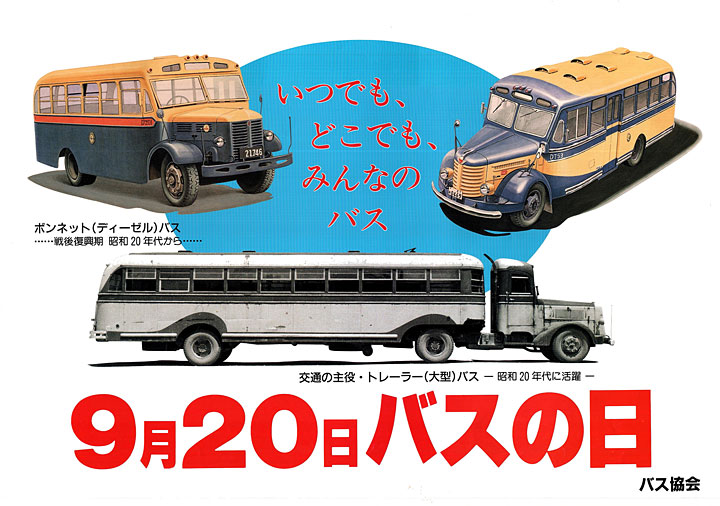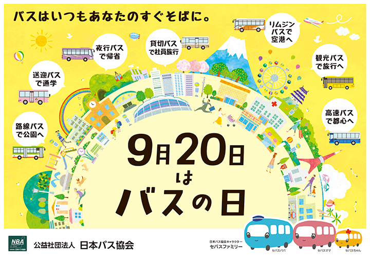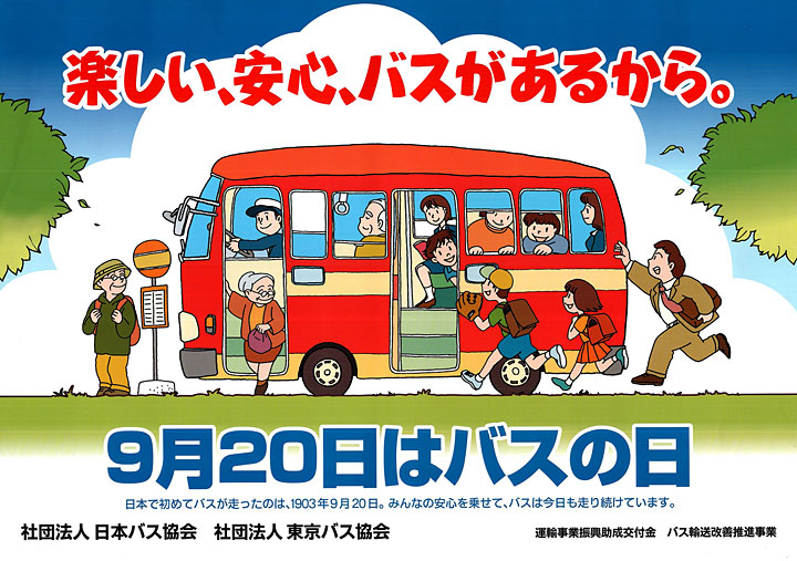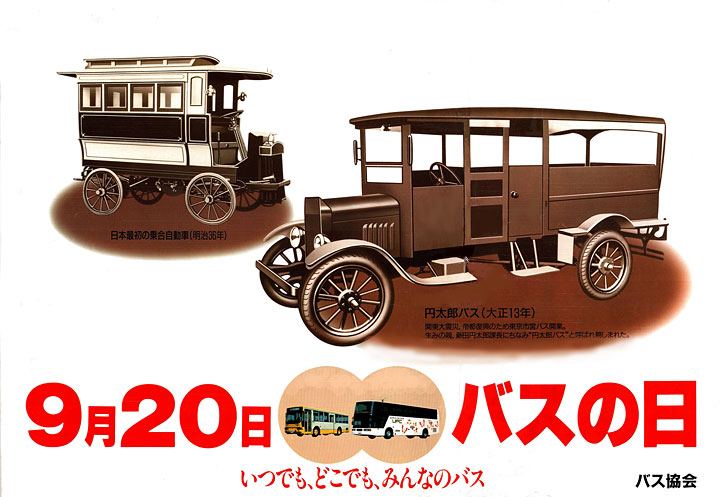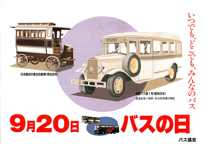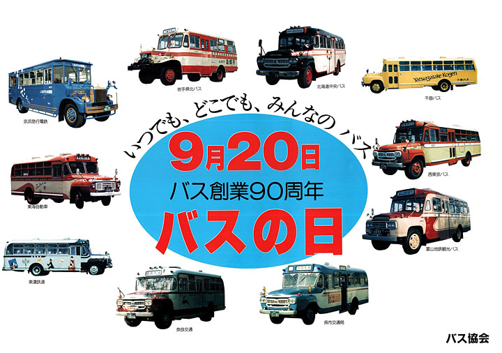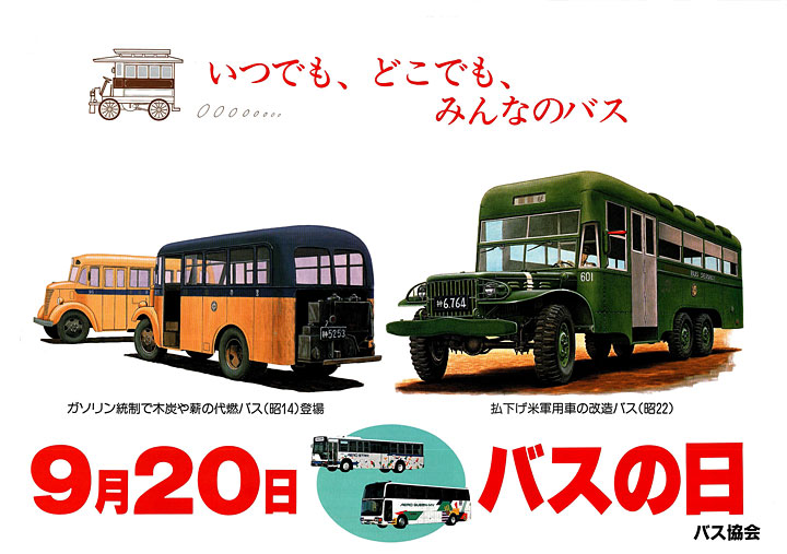 明治36年9月20日に日本でバス事業がスタートいたしました。バスの日を記念したさまざまなイベントも、バス事業の発展とともに歩んできました。もしかすると、皆さんのお父さんやお母さんが見たことのあるポスターもあるかもしれませんね。イベントの懐かしい様子などを思い出しながら、ご家族みんなでお気に入りのポスターを探してみてください。