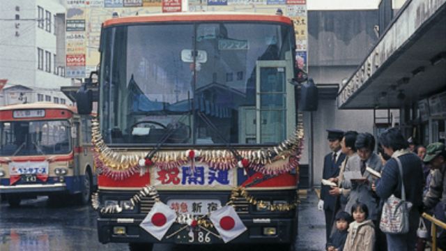昭和60年代の都市部では、都市圏の人口の校外への広がりとともに、深夜運行サービスも拡大しました。このほか、夜行高速バスも急速に路線数を拡大し、幅広い利用層の支持をえることとなりました。