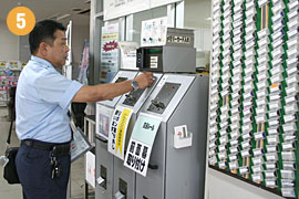 運賃箱に金庫をセットしたら、運行前の点検をします