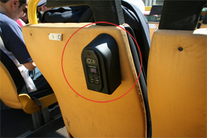 座席に設置された、多言語音声による観光ガイド