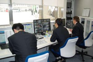 - 管制室には常時2〜3名がいて、マルチディスプレイ