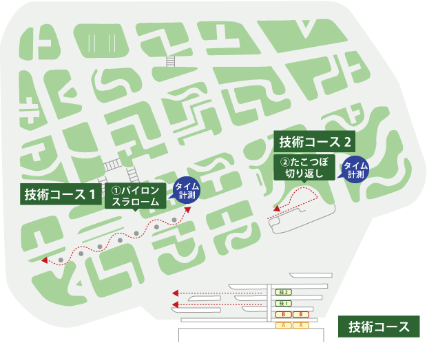 ●技術コース:難易度高のパイロンスラローム、たこつぼ!