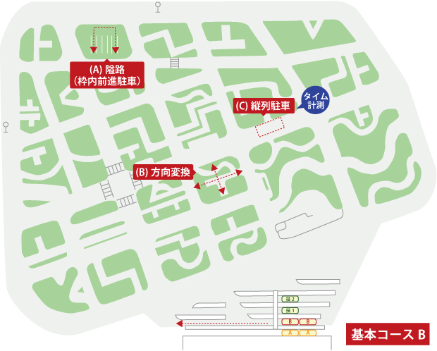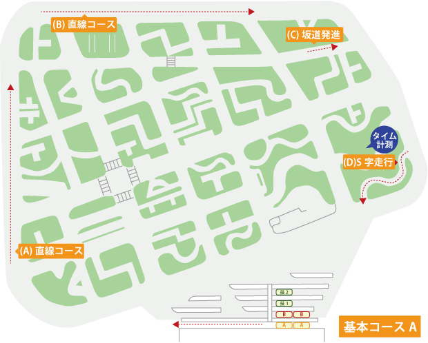 その他、スタート地点での、シートベルト装着の呼びかけなど、安全への配慮についても、チェックされます。坂道発進、S字コースは、前回と同様の試験となります。