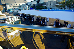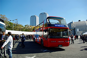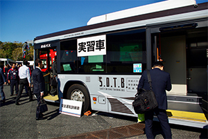 特別展示された日の丸自動車興業の「SKY BUS」に乗り、2階からの特別な視界を楽しむ人の姿も見られました。また、京成バスの安全運転訓練車「S.D.T.B」にも多くの人が乗車。京成バスが運転士教育の充実による安全性向上・接客向上・燃費節減などを目的に導入した訓練車で、アイマークレコーダーや、車内・車外安全確認器、サラウンドアイなどを装備したバスに関心が寄せられました。