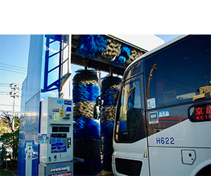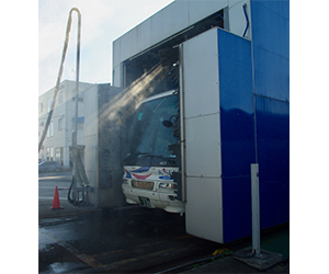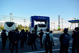 会場を飛び出して、京成バス営業所でJR東日本コンサルタンツ製の超節水型洗車機「BIG WASHERⅢ」を見学するツアーも計4回行われました。会場を出発して戻ってくるまで約60分。途中で車窓からは美しく輝く海も見えるなど、お得感満載の企画でした。「Arash(アラッシュ)」とは、微細なミストと強力なエアーによる革新的な洗車技術。車体がすみずみまで美しくなり、拭き上げ作業の手間も軽減。さらには超節水で水道代を大幅に削減できるという、まさに優れもののシステムでした。
